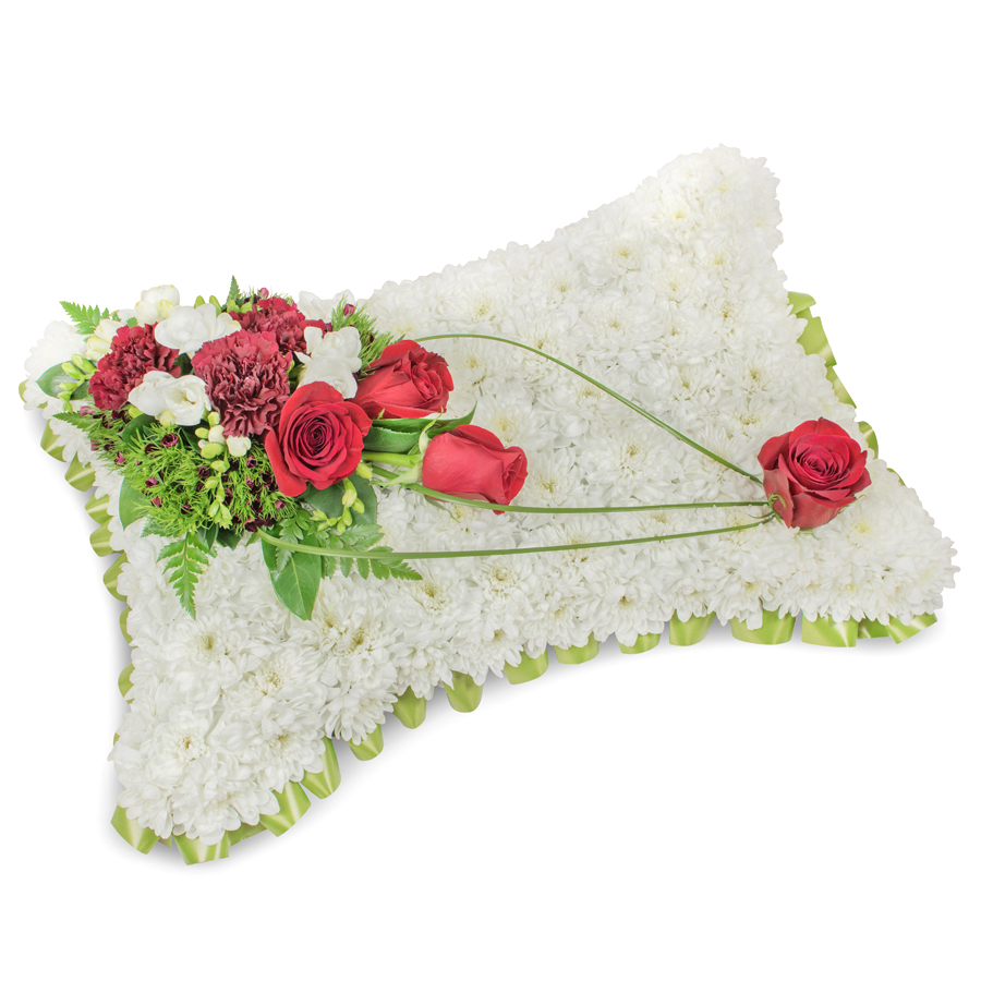 Embrace the art of tribute with our Majestic Remembrance Flower Collection – an arrangement steeped in grace and heartfelt sentiment. This bouquet is a delicate fusion of pristine white chrysanthemums, striking red roses, soft white freesias, and deep, rich dark red carnations enhanced by subtle hints of dianthus and bear grass. Each flower is hand-selected with care, ensuring exceptional freshness and vibrant hues that communicate your sincere condolences.